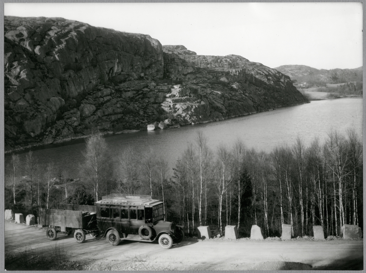 Daimler - Motoren AG. Statens Järnvägar, SJ buss passerar Tåsteröds stora vatten.