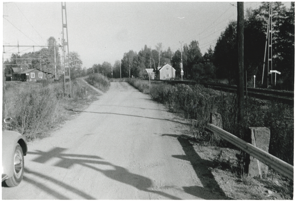 Strömsbro station och godsmagasin till vänster, till höger syns Strömsbro banvaktstuga.