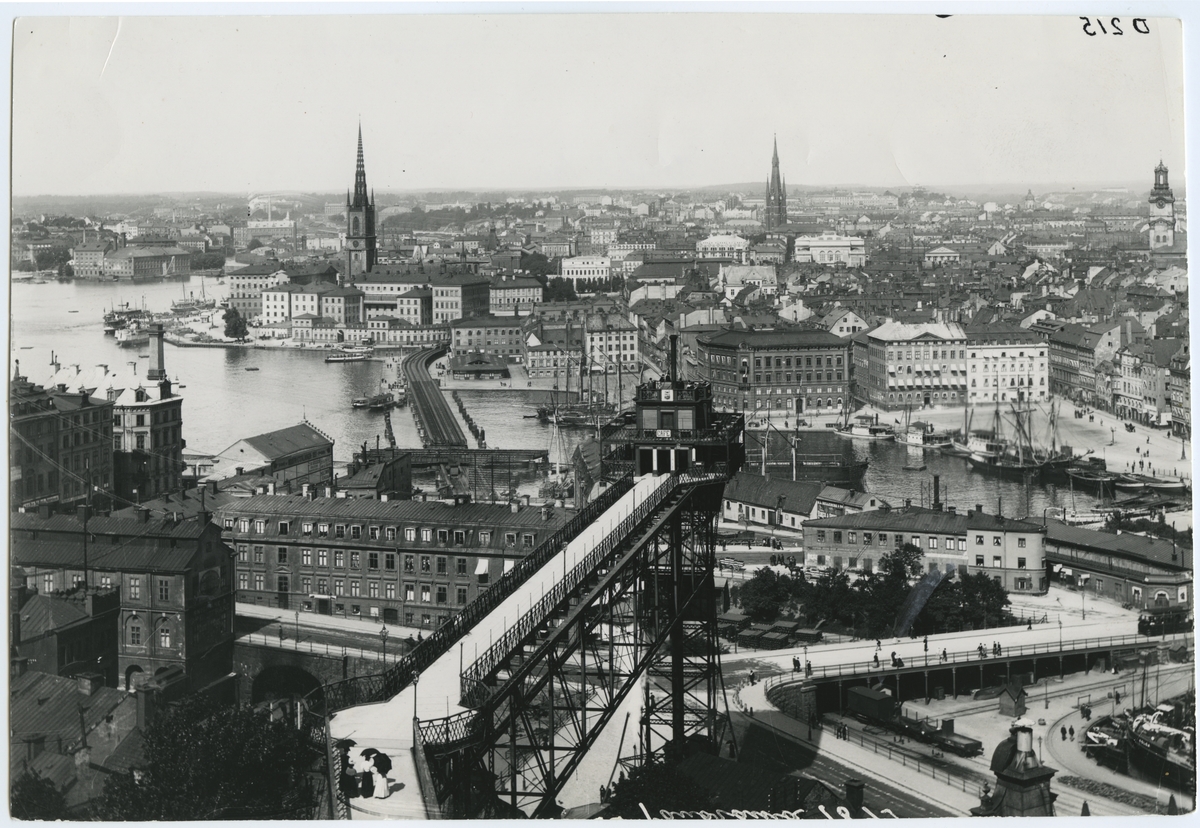 Utsikt över centrala Stockholm, med Katarinahissen i blickfånget.