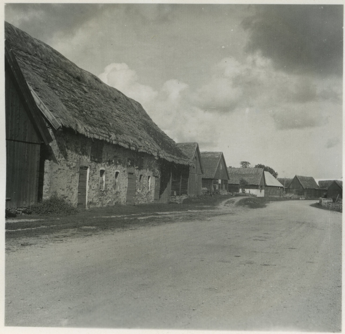 Ekonomibyggnader med stråtak i Äpplerums by.