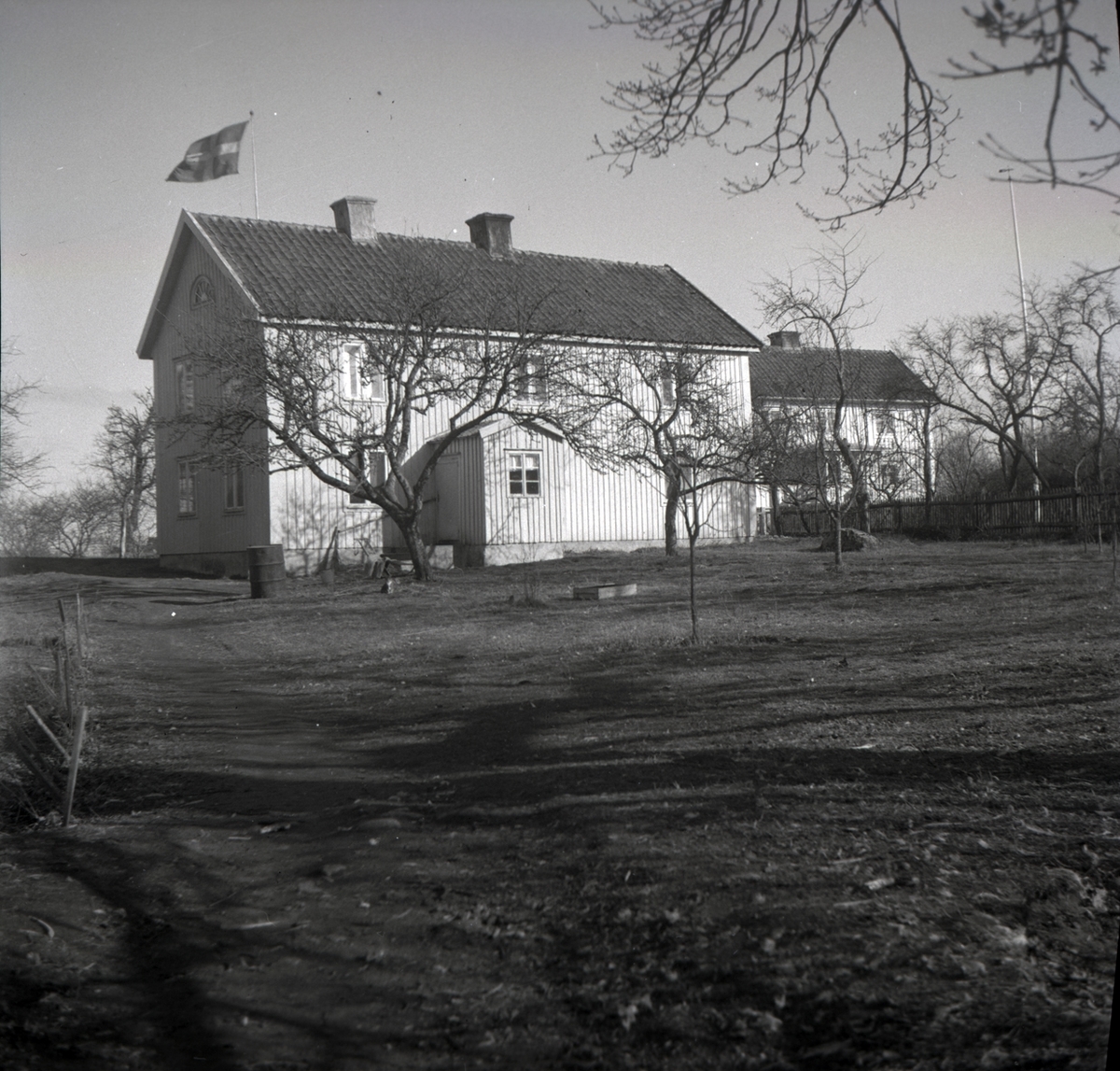 Ett bostadshus, staket och fruktträd i Björnö by.