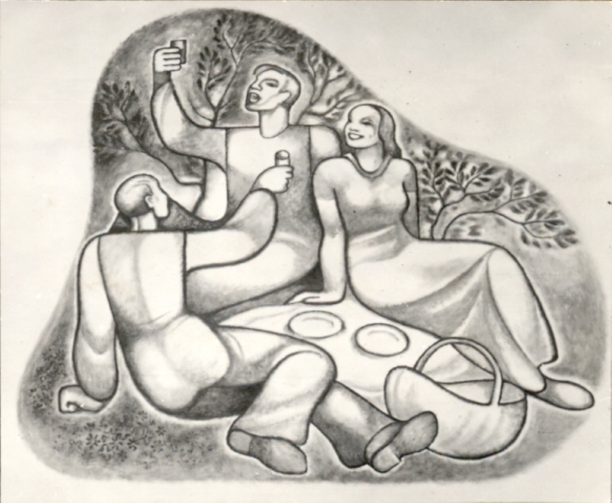 Södra Långgatan 42, väggmålning av Einar Forseth i Witts matsal. Har målats över eller rivits bort under senare renoveringar.