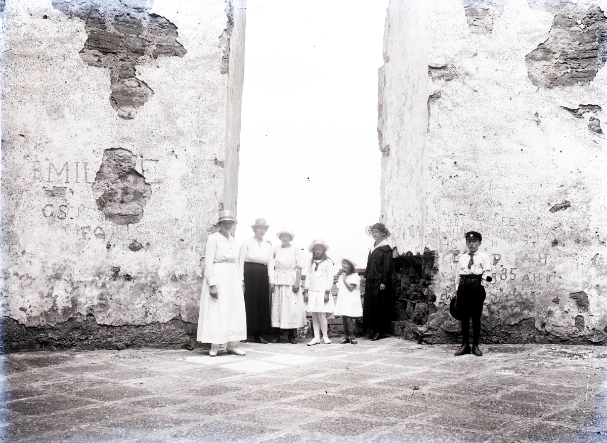 Kvinna, flickor och pojke på slottsruinen Borgholm slott.
