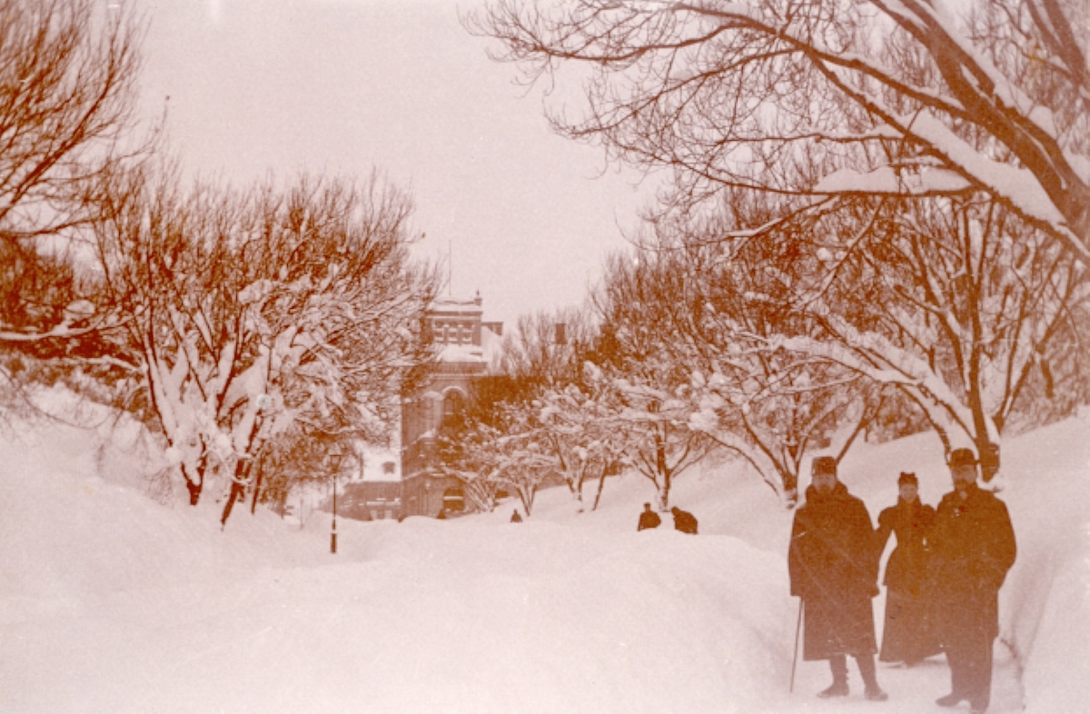 Olof Palmes gata i rikligt med snö år 1895.
