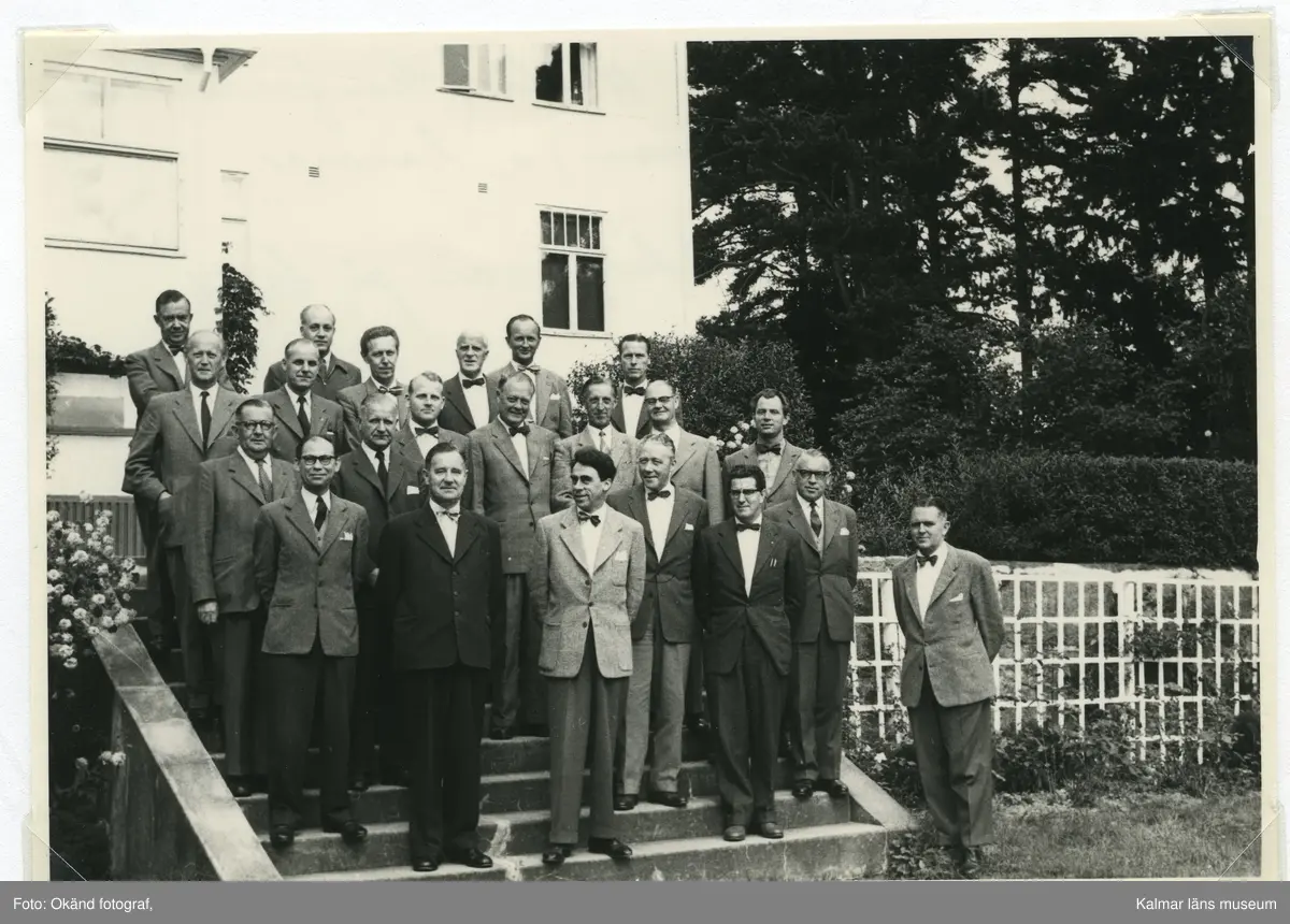 Civilförsvarets skola. Civilförsvarsdirektörerna och lärare. Kung Gustav VI Adolf var på besök. Andra raden längst till vänster Harald Klette, Kalmar läns civilförsvarsdirektör.