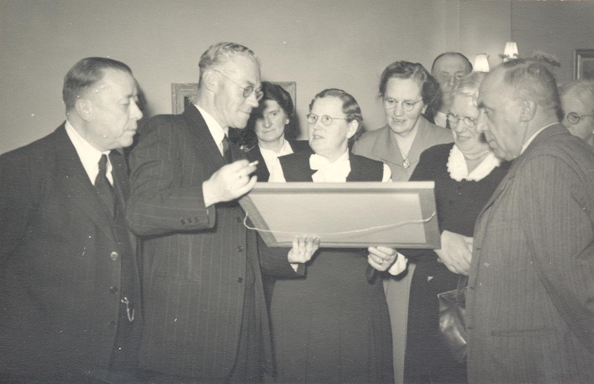 Här studeras en hedersgåva till befallningsman Sjöholm.