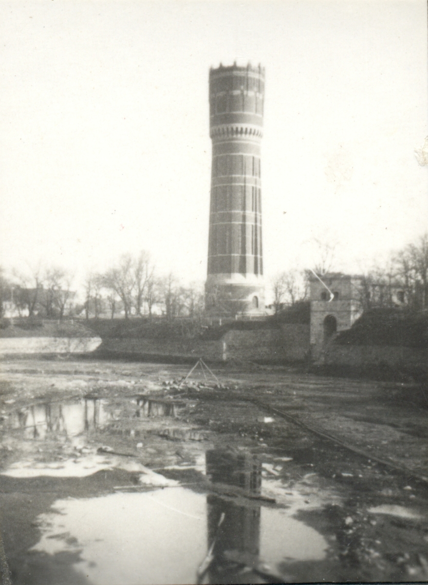 Systraströmmen tömd på vatten. I bakgrunden Gamla vattentornet.