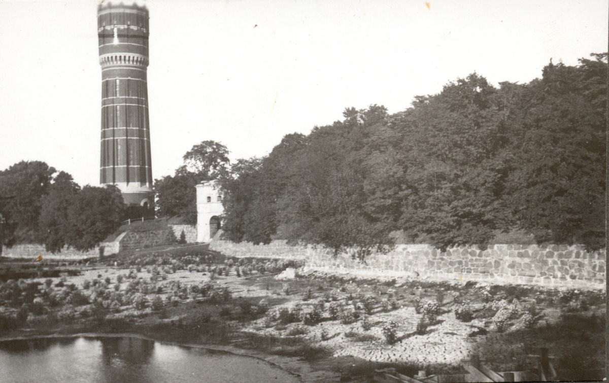 Systraströmmen tömd på vatten. I bakgrunden Gamla vattentornet.