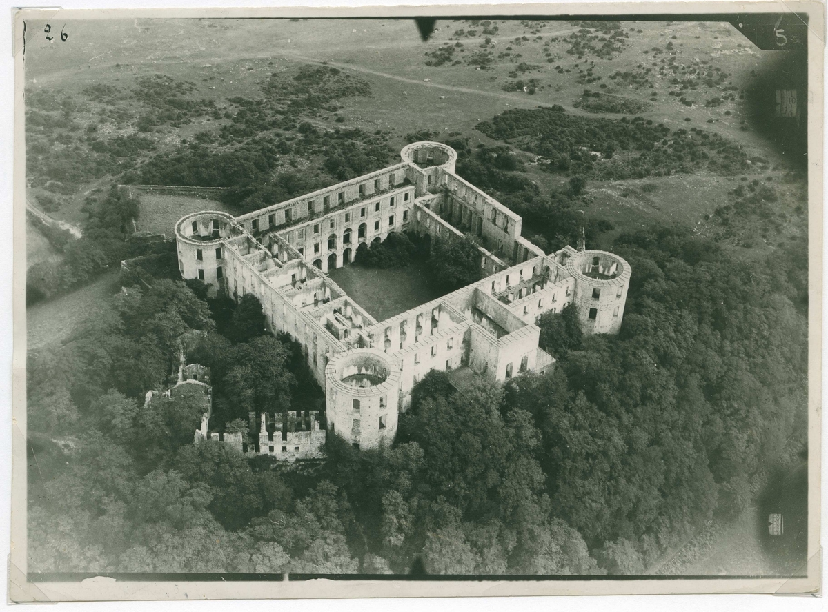 Flygfoto ifrån marinen 1923 över Borgholms slottsruin.