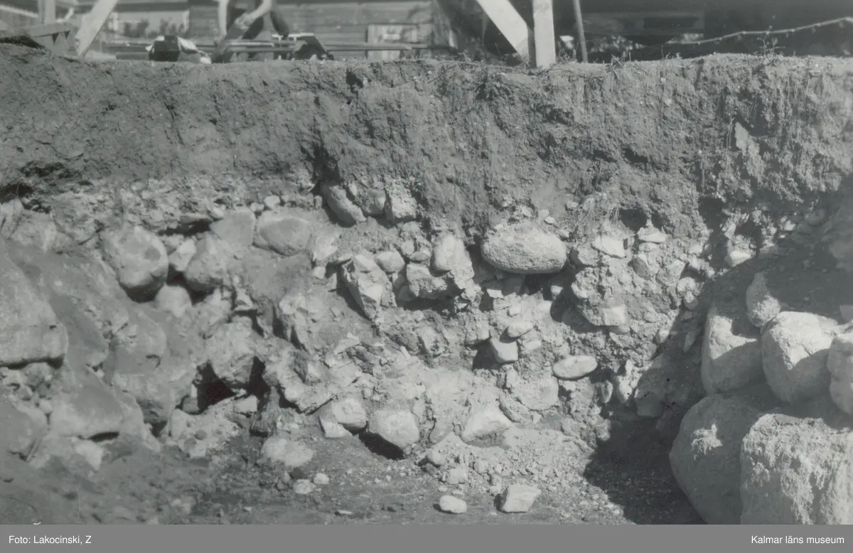 Fogelqvists tomt. Parti av gamla stadsmuren. Fyllning utanför det halvrunda tornet.