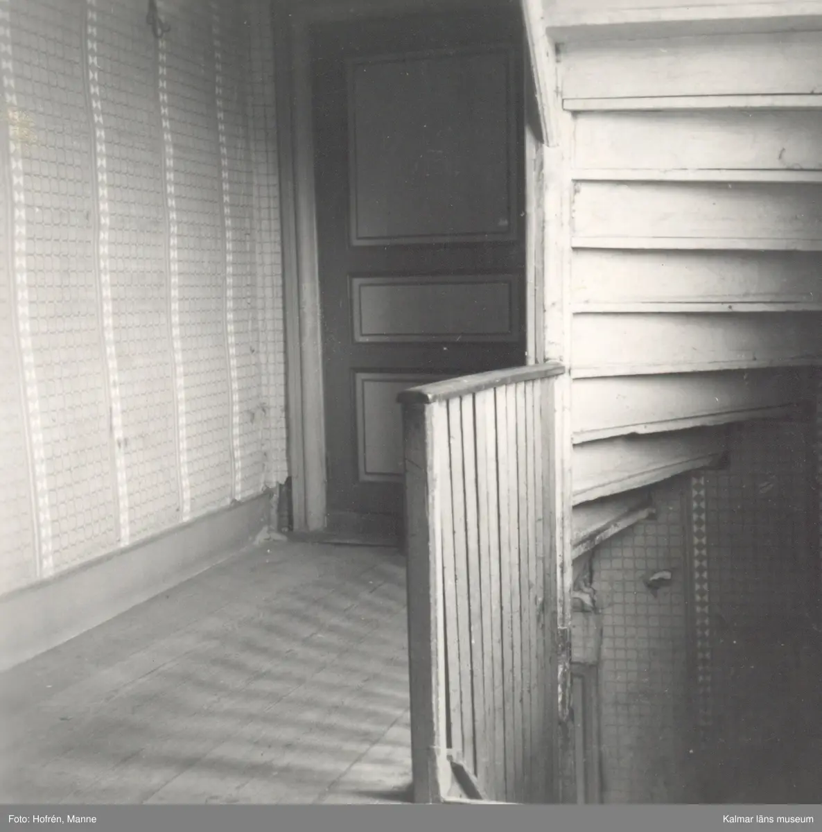 En trappavsats och trappa i en byggnad i Mjödehult.