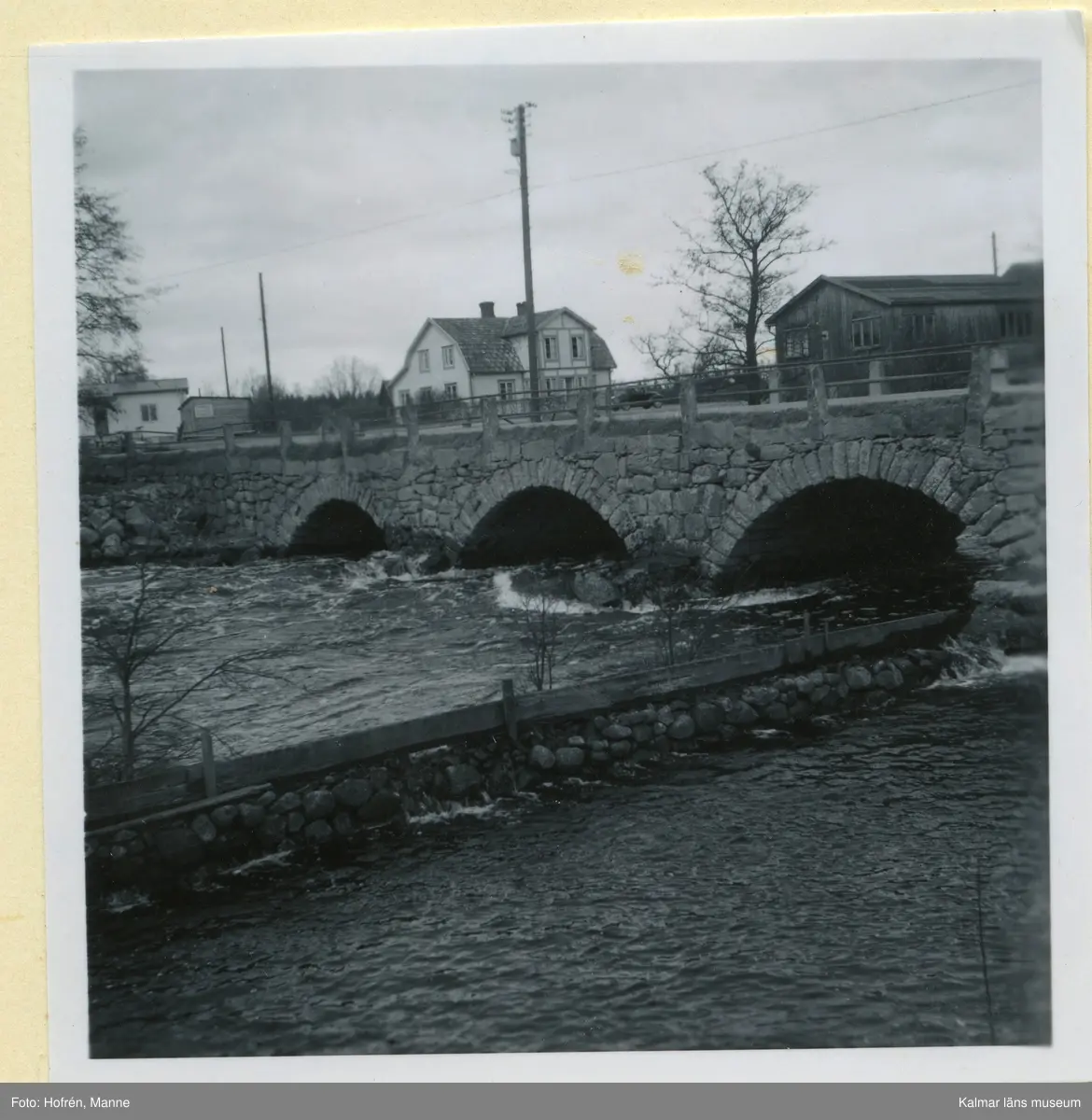 En valvbro som är en kallmur. På en dammanläggning i Broholm.