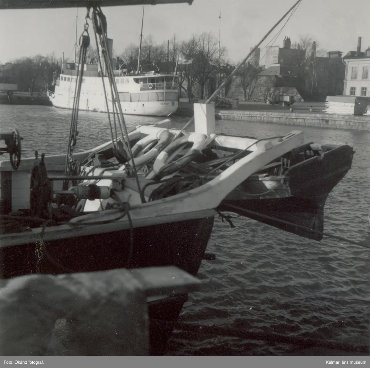 Akten på Anna av Saltvik. Skonert byggd 1854 i Marstal. Foto i Kalmar hamn 1951.
