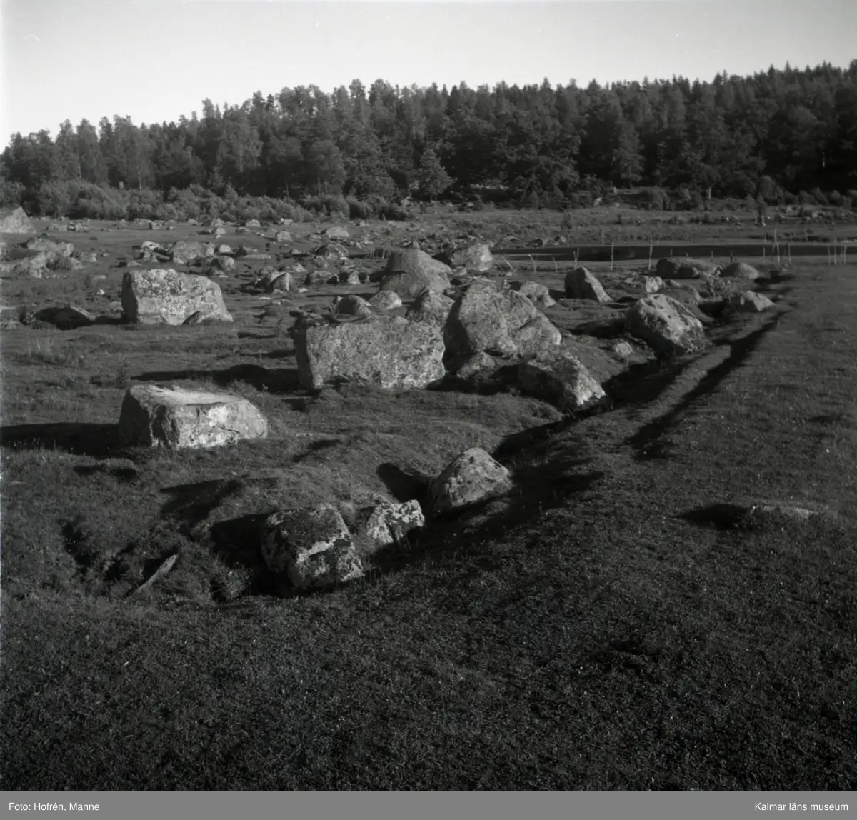 Betesmark, före detta åker med synliga diken emellan tegarna.