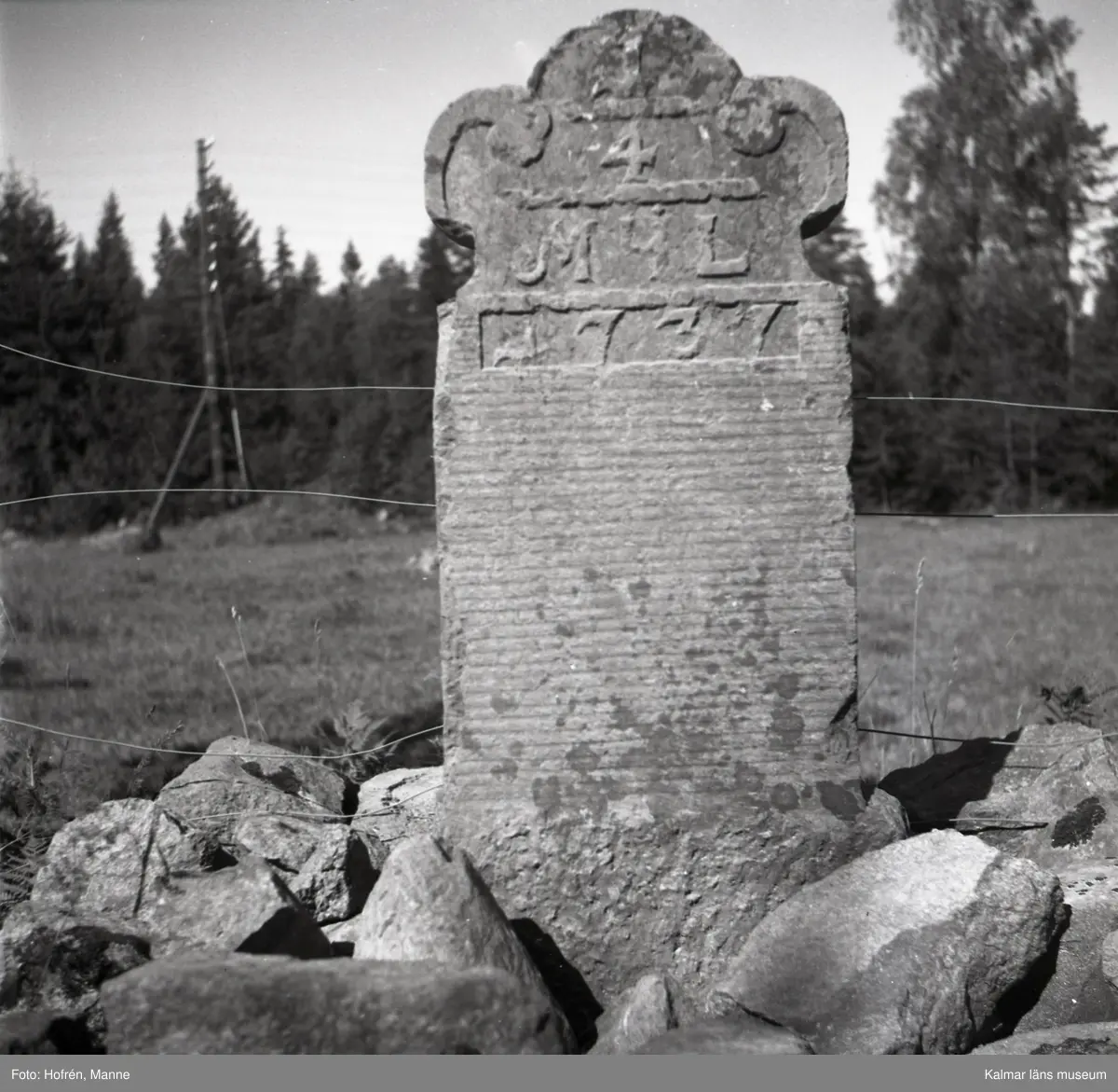 Milsten vid stora vägen, en kilometer söder om Hultsfred. Text: 1/4 mil 1737.
