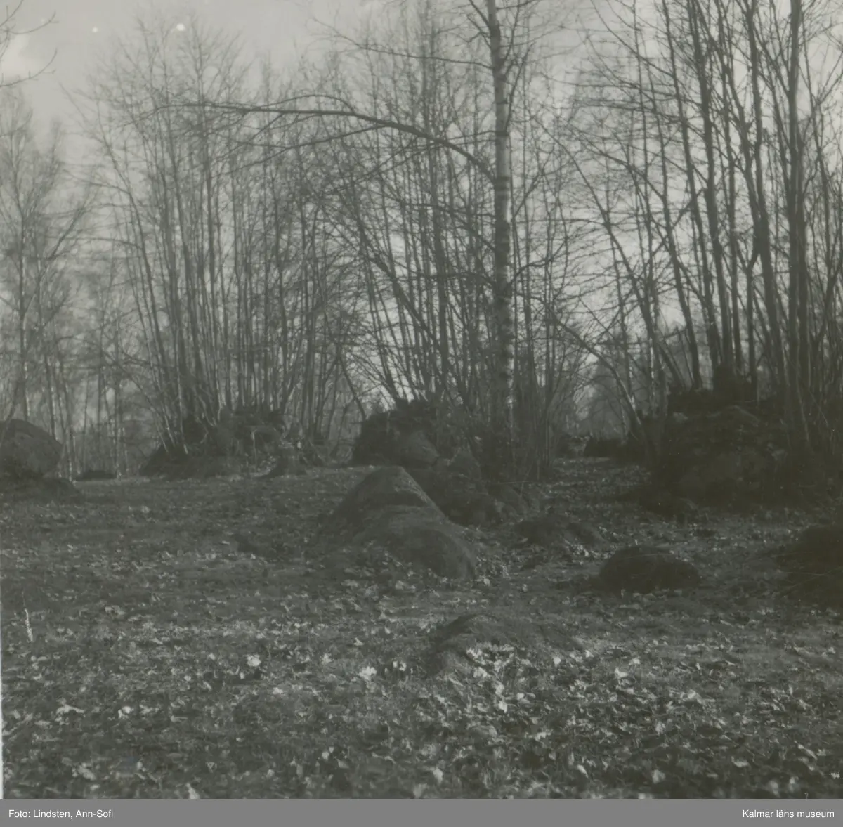 Gammal åker med odlingsrösen; högt belägen på en ås.