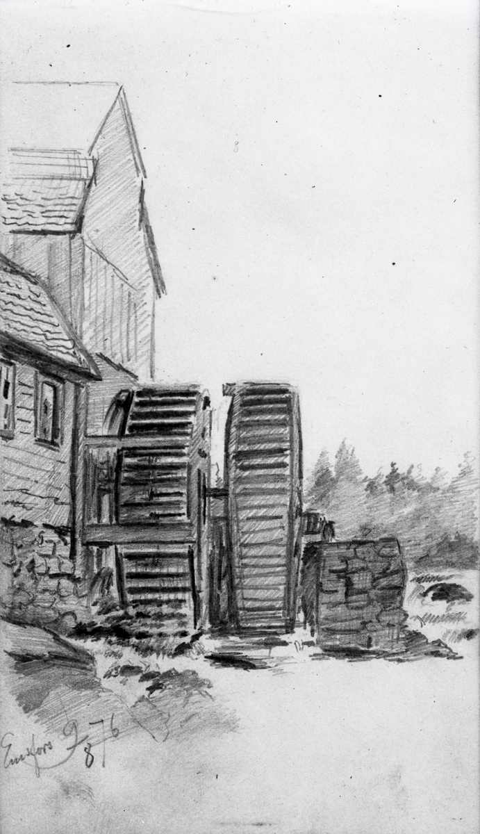 Emsfors, teckning av Nils Kreuger 1876.