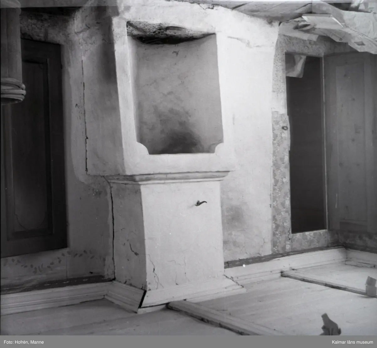 Öppen spis i övre våningens storstuga.