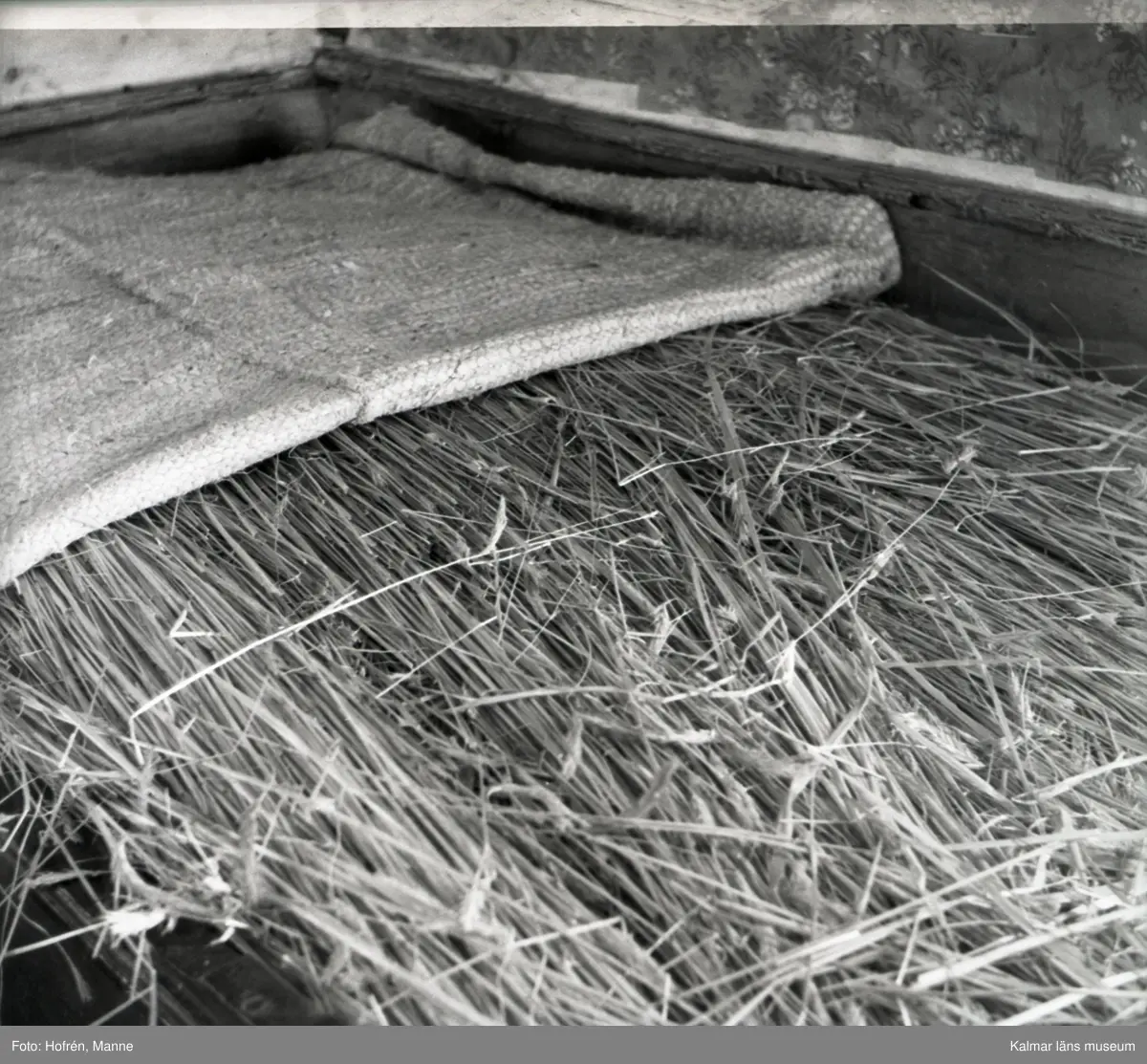 Titel: Väggfast halvsäng med lös långhalm och sängmatta.