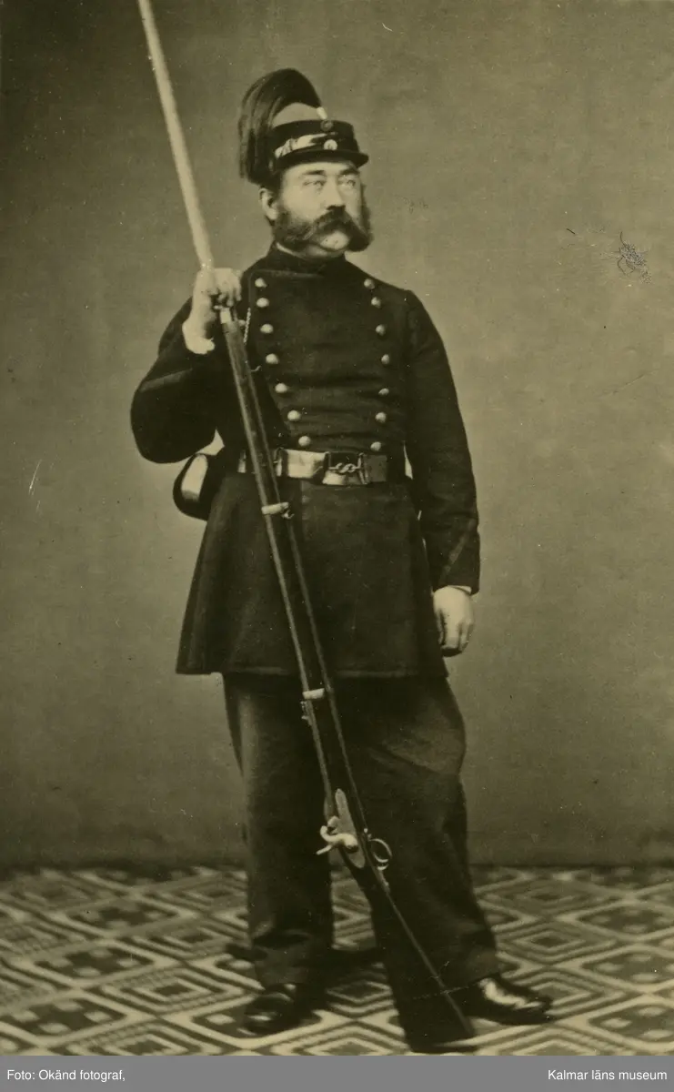 Gullbrandsson, Victor Ferdinand med uniform, plym och gevär.