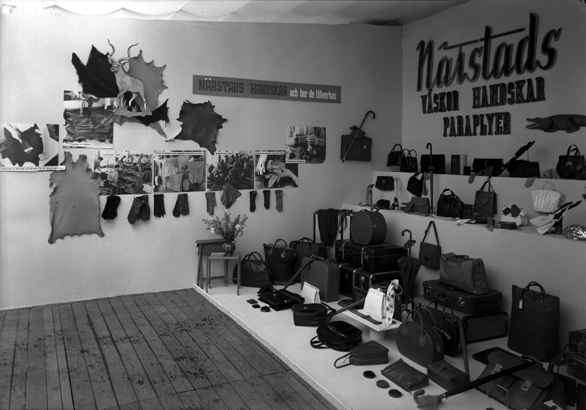 Hantverksutställningen 1947 i Kalmar. Paviljongen för Närstads Väsk- och Handskaffär, Larmgatan Kalmar.