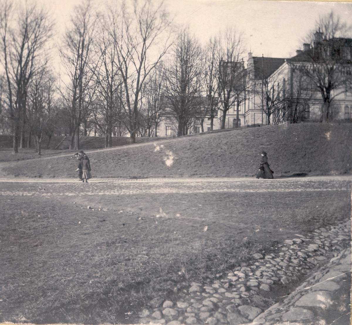 Gångstigen vid parken till Frimurarhotellet och Teatervallen i Kalmar.