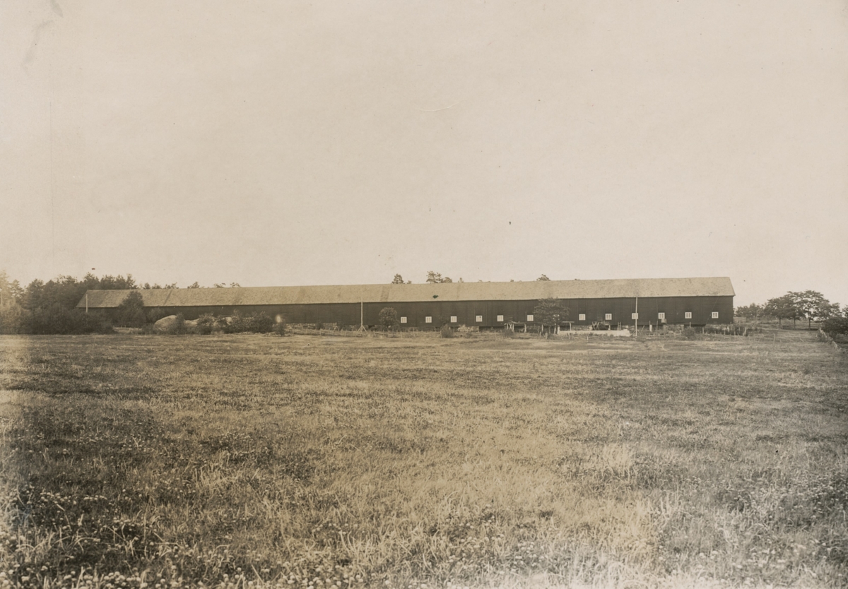 En enda ladugårdslänga av betydande storlek. Av timmer i skiftesverk. Rödmålad, ej panelad och med tegeltak. I delen närmast gården ligger stallet.