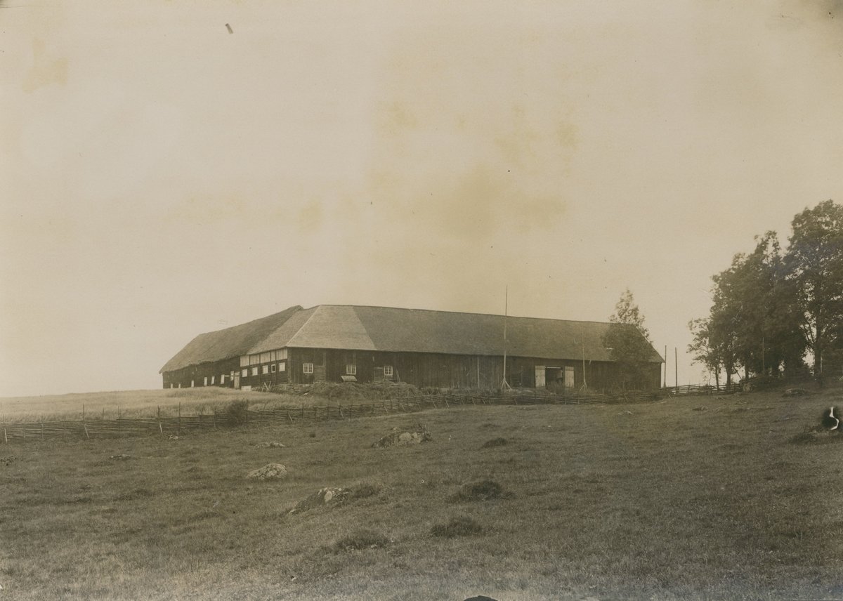 Ladugården: Fähuslängan är byggd med tekniken skiftersverk under halm och spåntak.