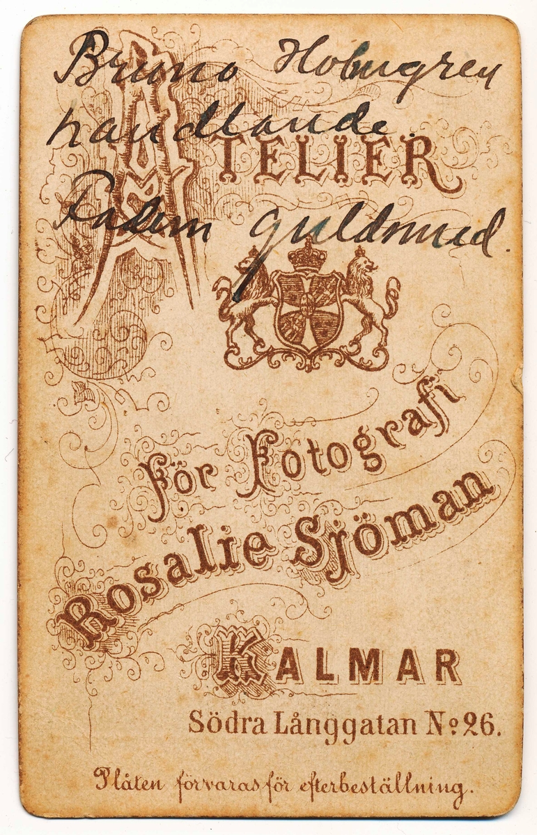 Bruno Holmgren, handlare. Fadern Guldsmed. Atelier för fotografi Rosalie Sjöman Kalmar Södra Långgatan No 26.