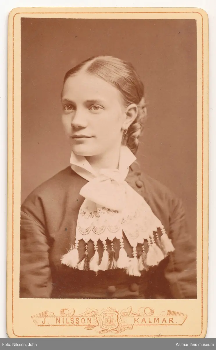 Fröken Swensson, syster till fru Bergdahl och dotter till handskmakare Swensson. Fotografi-Atelier John Nilsson Kalmar.