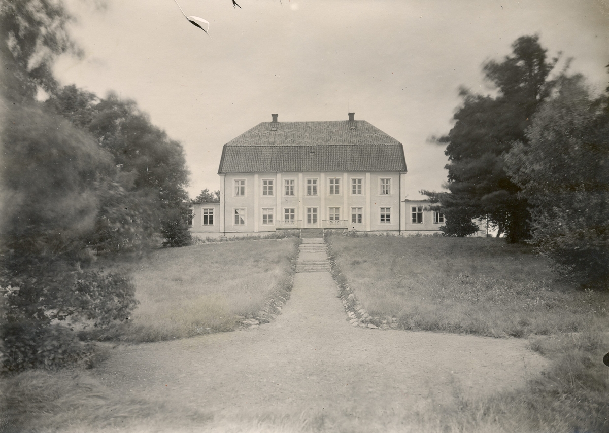 Mangårdsbyggnad med park, foto från sjösidan.