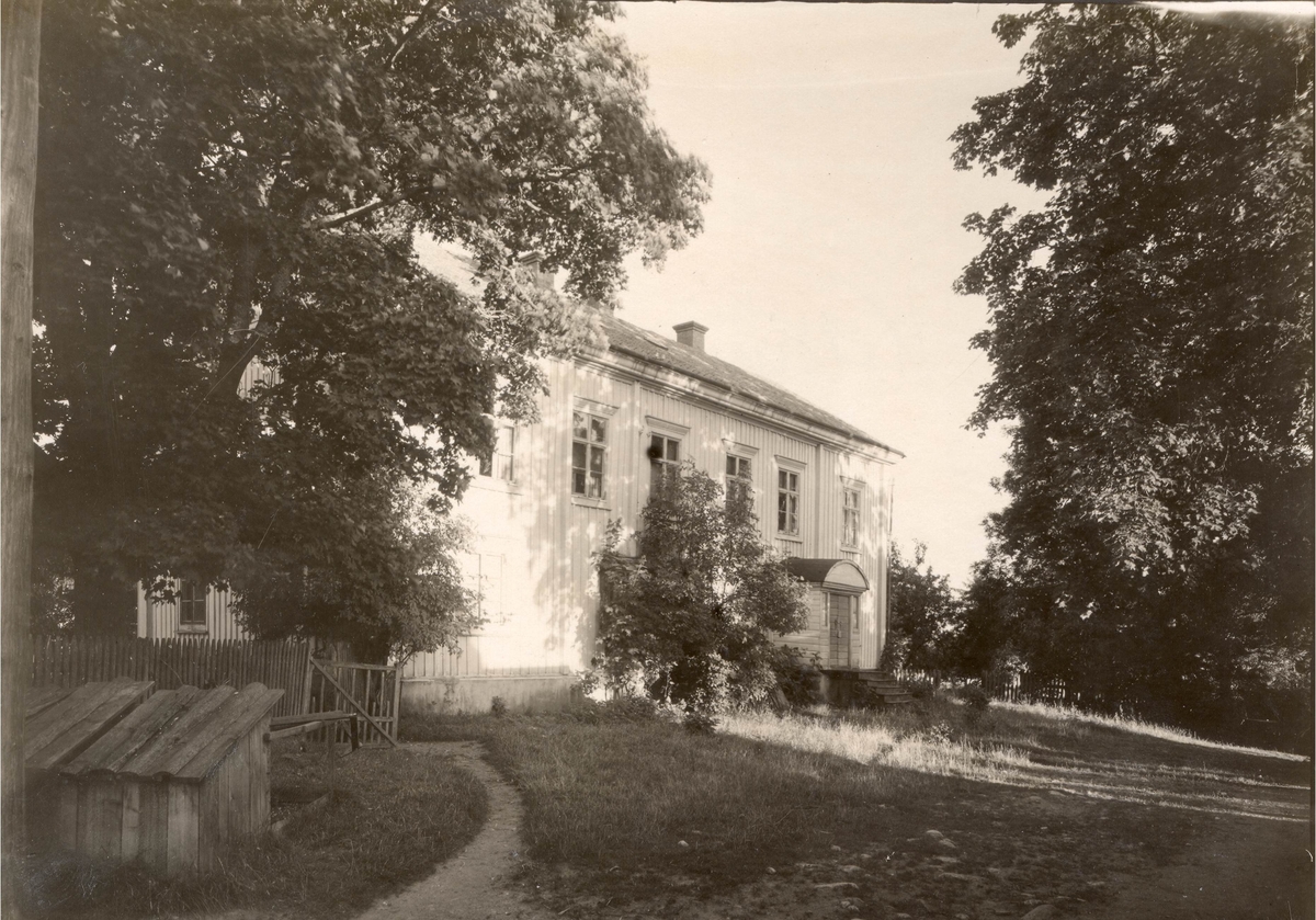 Mangården. Från trädgårdssidan. Vid kvisten finns ingång till köket.