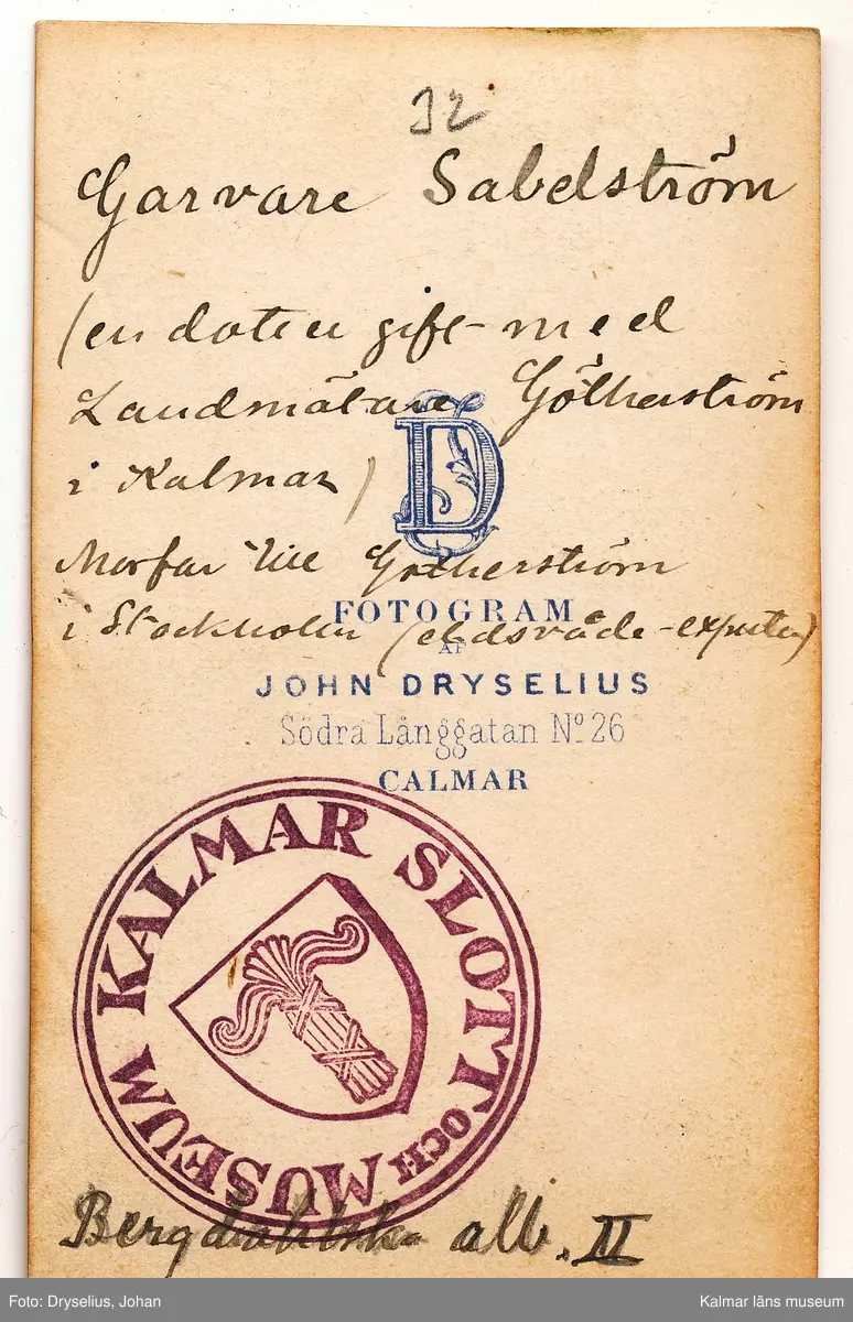 Garvare Sabelström. En dotter till honom var gift med lantmätare Götherström i Kalmar. Morfar till eldsvådeexperten Götherström i Stockholm.