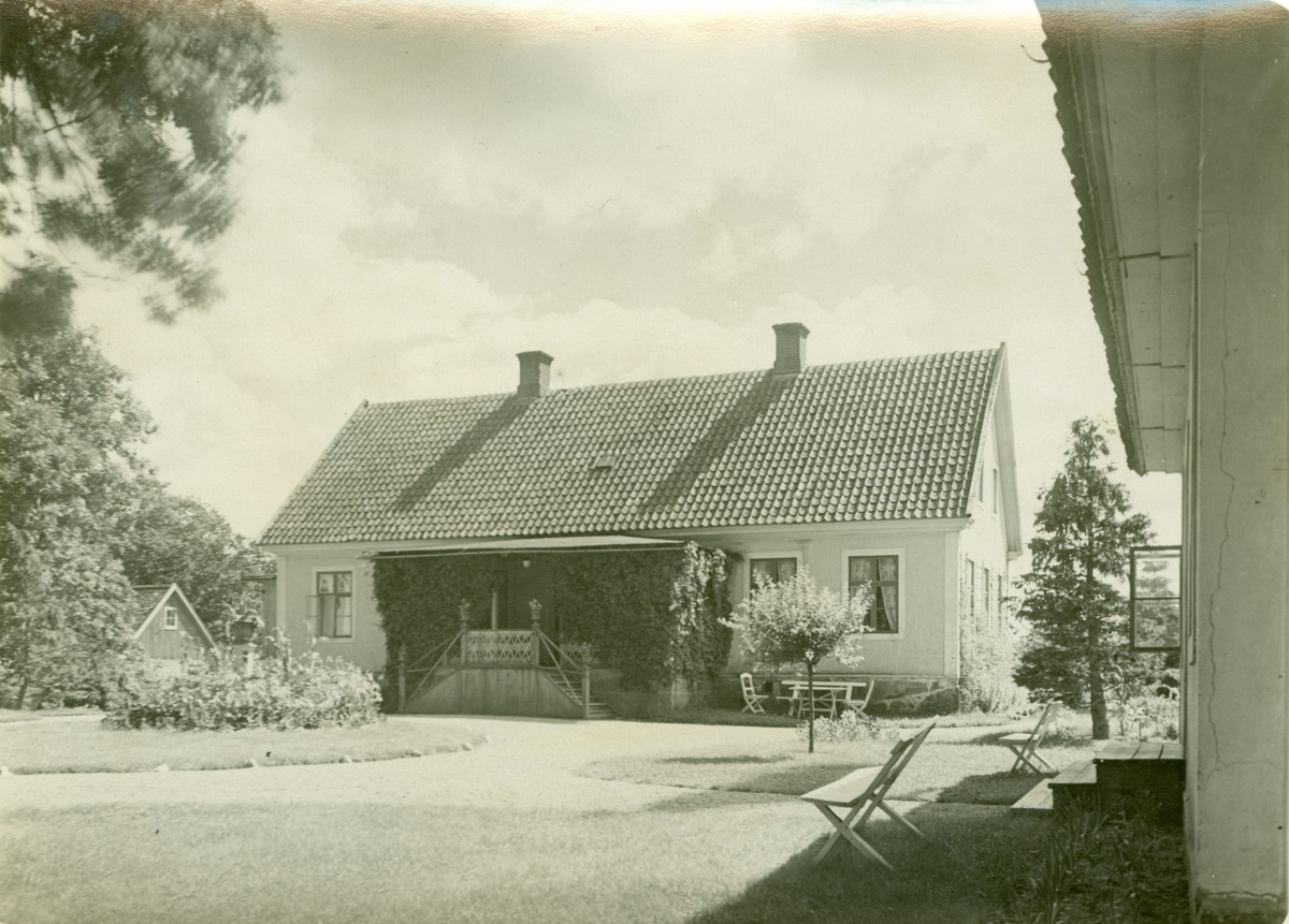 Maltebo gårds huvudbyggad: gårdssidan. Putsat trähus, gult med vita hörn och foder. Uppfört omkring 1865.