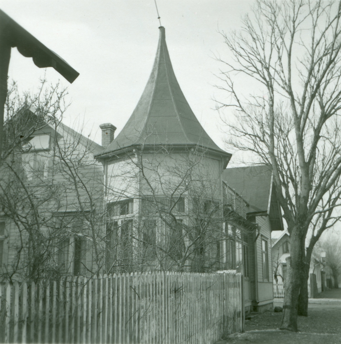 Ett bostadshus med torn.