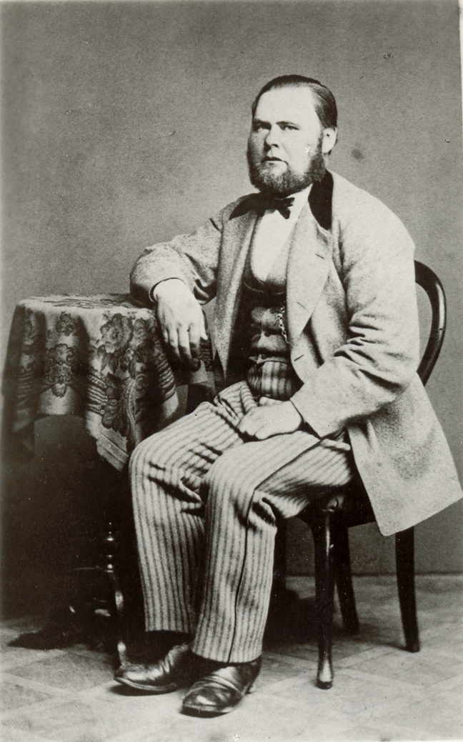 Bild på en sjökapten som sitter på en stol bredvid ett bord, Kalmar.