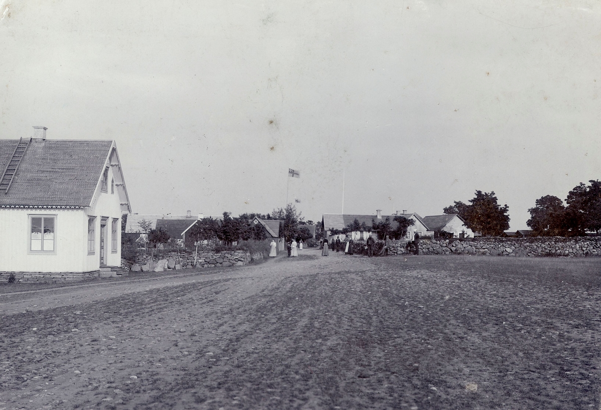 Till vänster ordenshuset som byggdes 1900 för en kostnad av 1350 kr. Unionsflaggan i mitten.