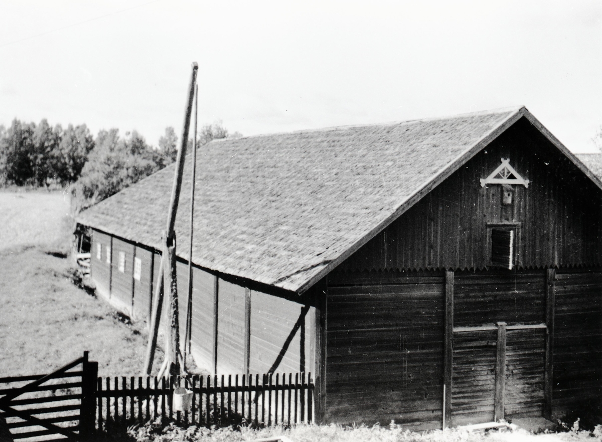 En ladugård med liggande timmer, och stråtak, i Långeruda.