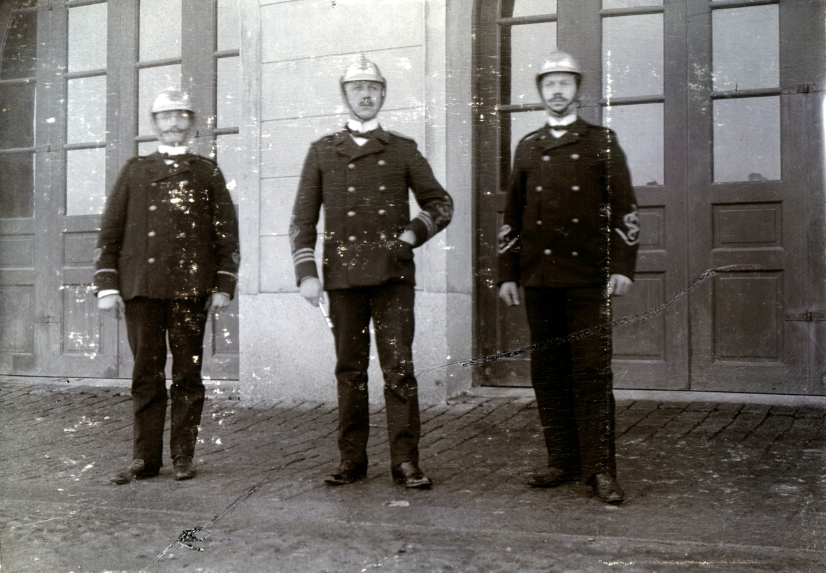Brandmästare Blomqvist, brandchef Stridbeck och brandsergeant Johansson vid Kalmar brandkår.