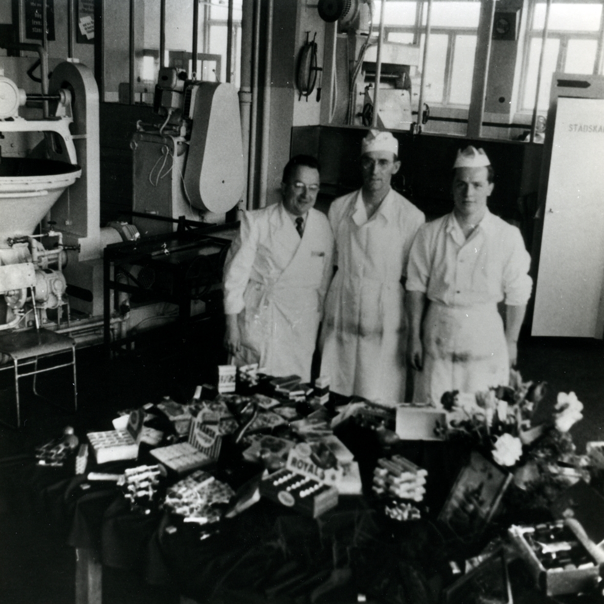 Till vänster befinner sig Adolf Tschopp, pralinmästare. Till höger Olle Karlsson som blev Tschopps kronprins.