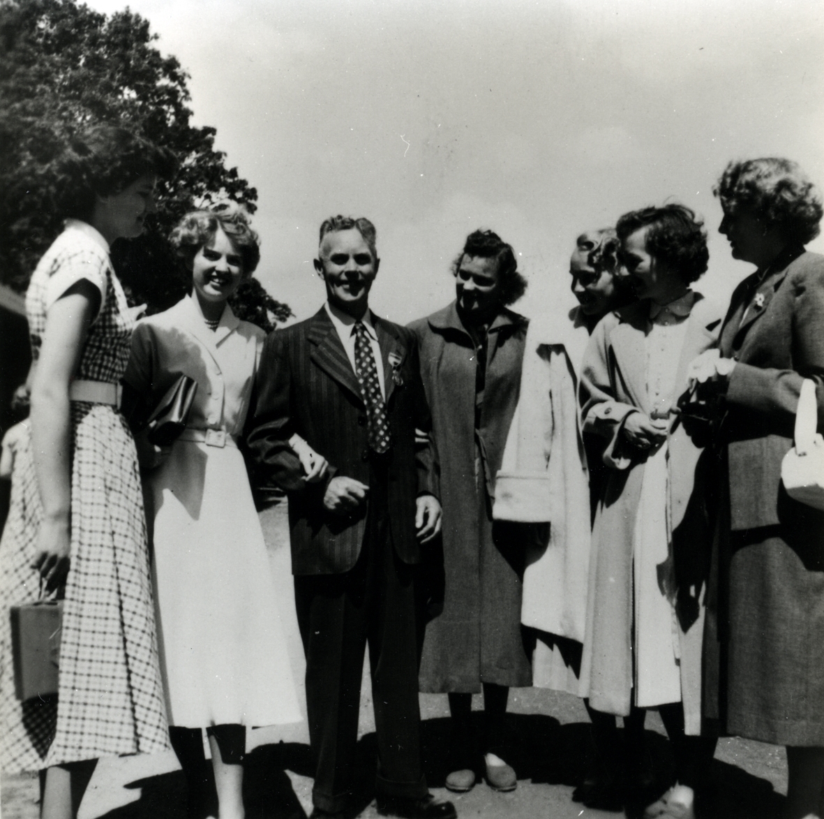 I mitten Arvid "på vinden" Johansson. Till höger Dagmar Nilsson, Elsa Tell, Margit Hedin.