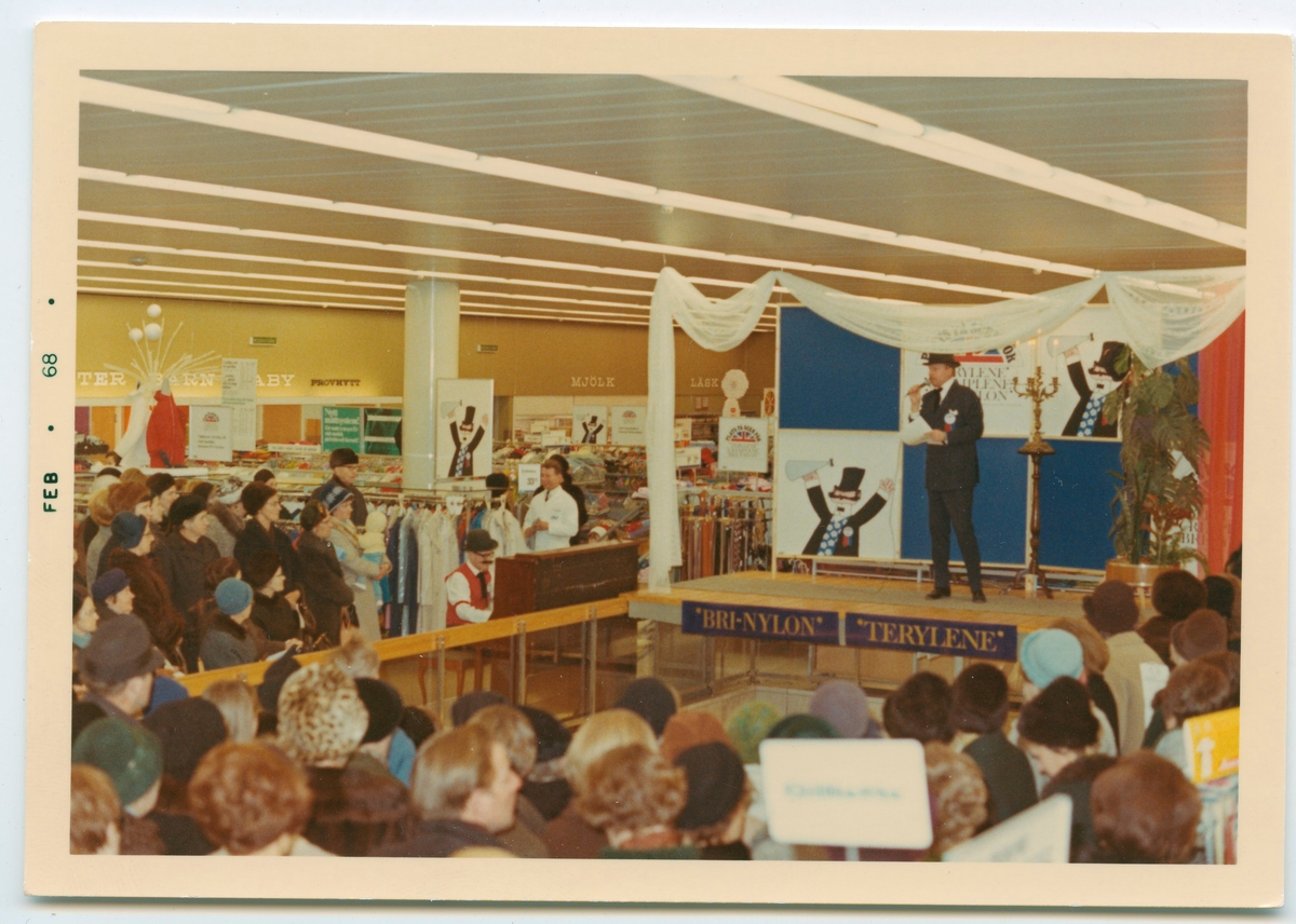 Reklamevenemang på Domus i Kalmar, för terylen och Bri-nylon, 1968.