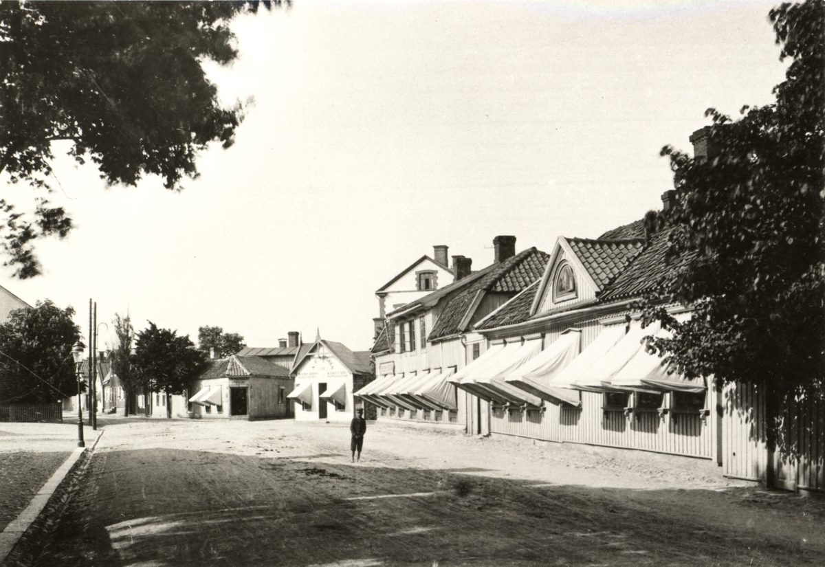 Norra Vägen, Skvallertorget, kvarteret Laken, Laxen och Rockan år 1908.