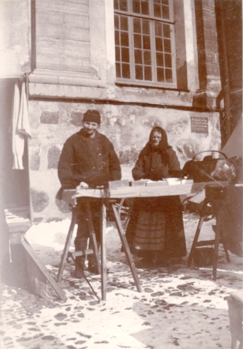 Stortorget mars 1895. Blinde Westergren med hustru.
