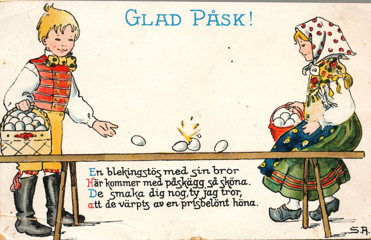 Ett påskkort till Kristina Andersson, Kristina Nilsson född Andersson och till Edvard Nilsson i Böda från avsändare i Sverige.