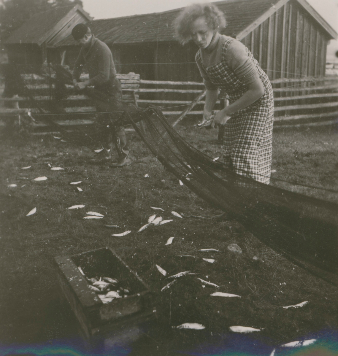 Fiskfångst vid ett fiskeläge i Svartvik.
