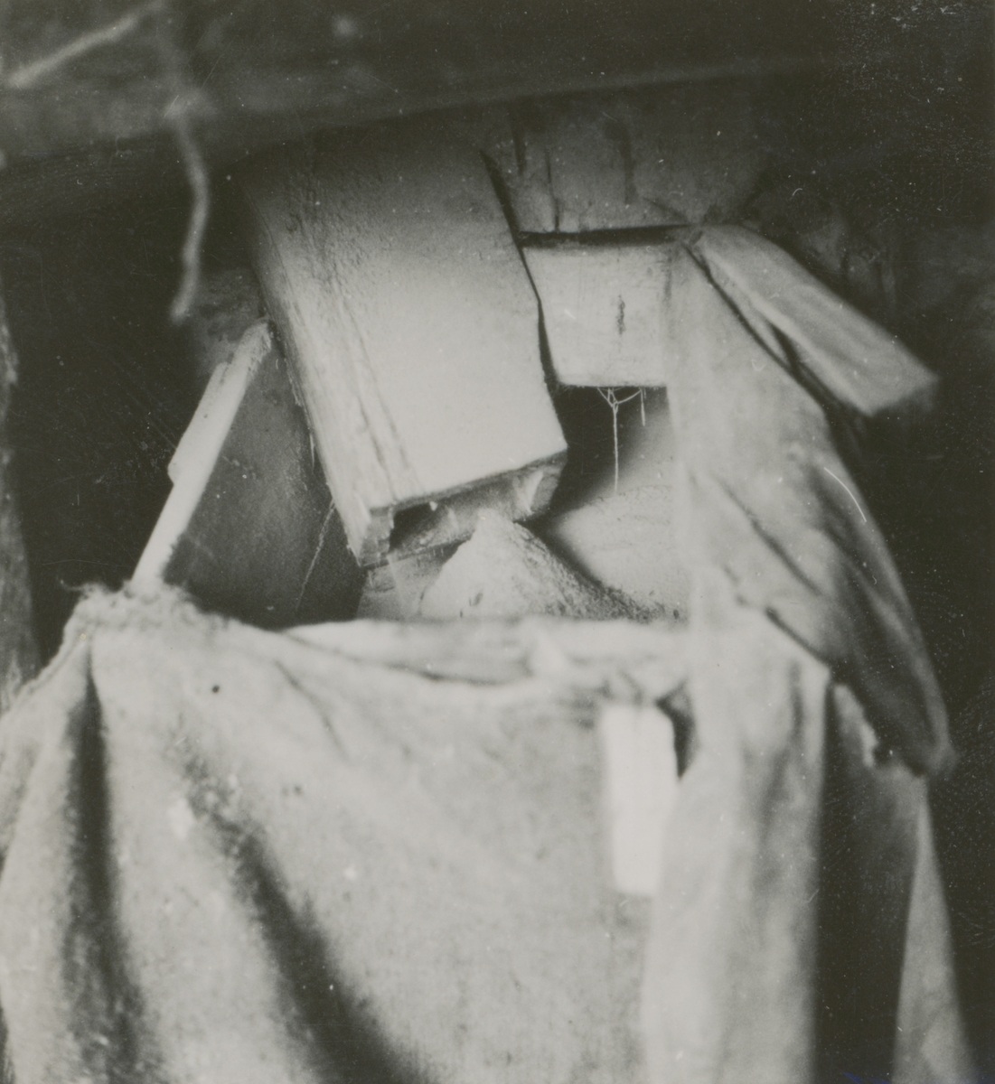 Inne i en kvarn i Kvarnstad, vänster om stora landsvägen. Mjölnaren för tillfället borta. Mälden övervakades av en närboende smed.