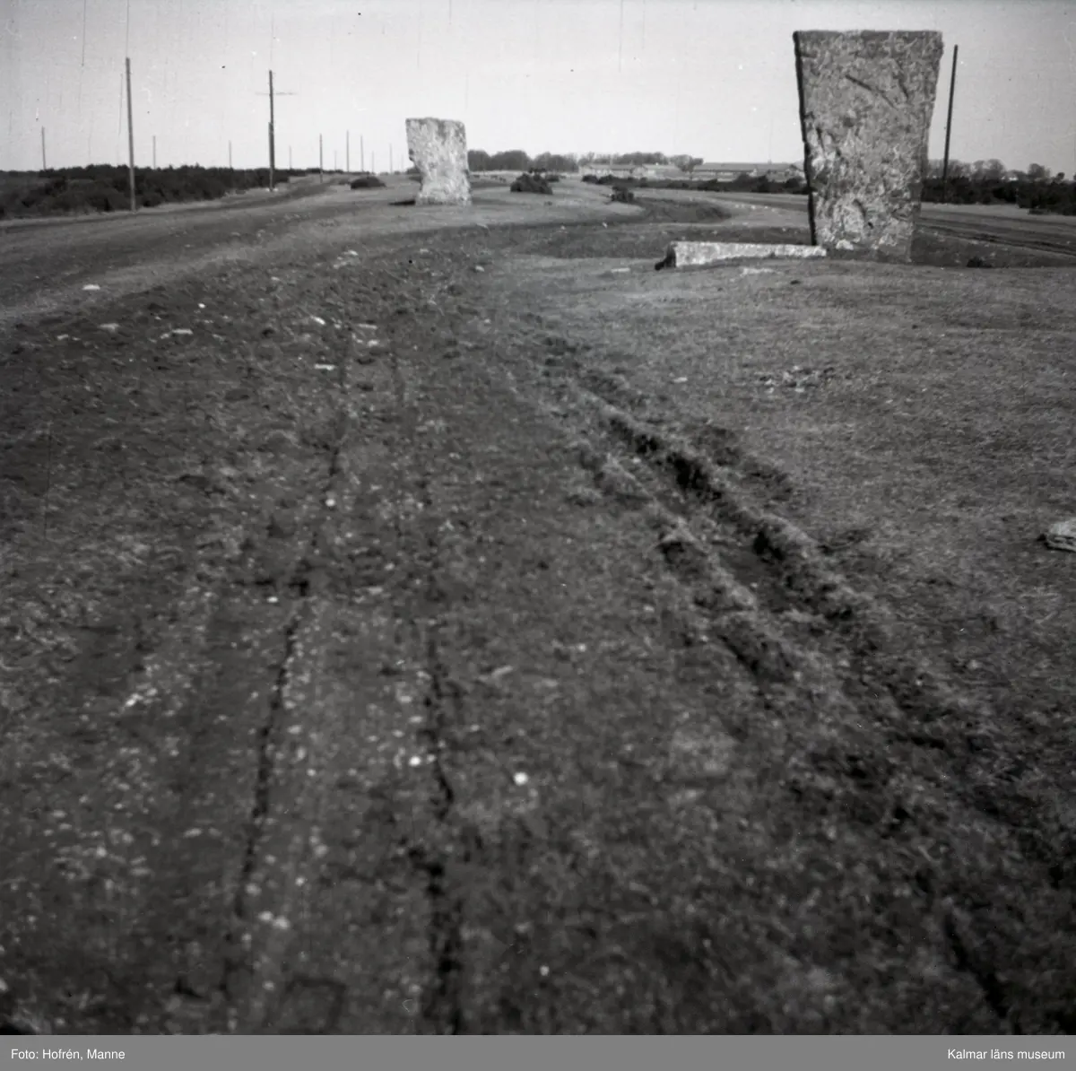 Kungsstenarna vid södra udden. Observera den skadade marken där man kört med motorforden på den känsliga heden.