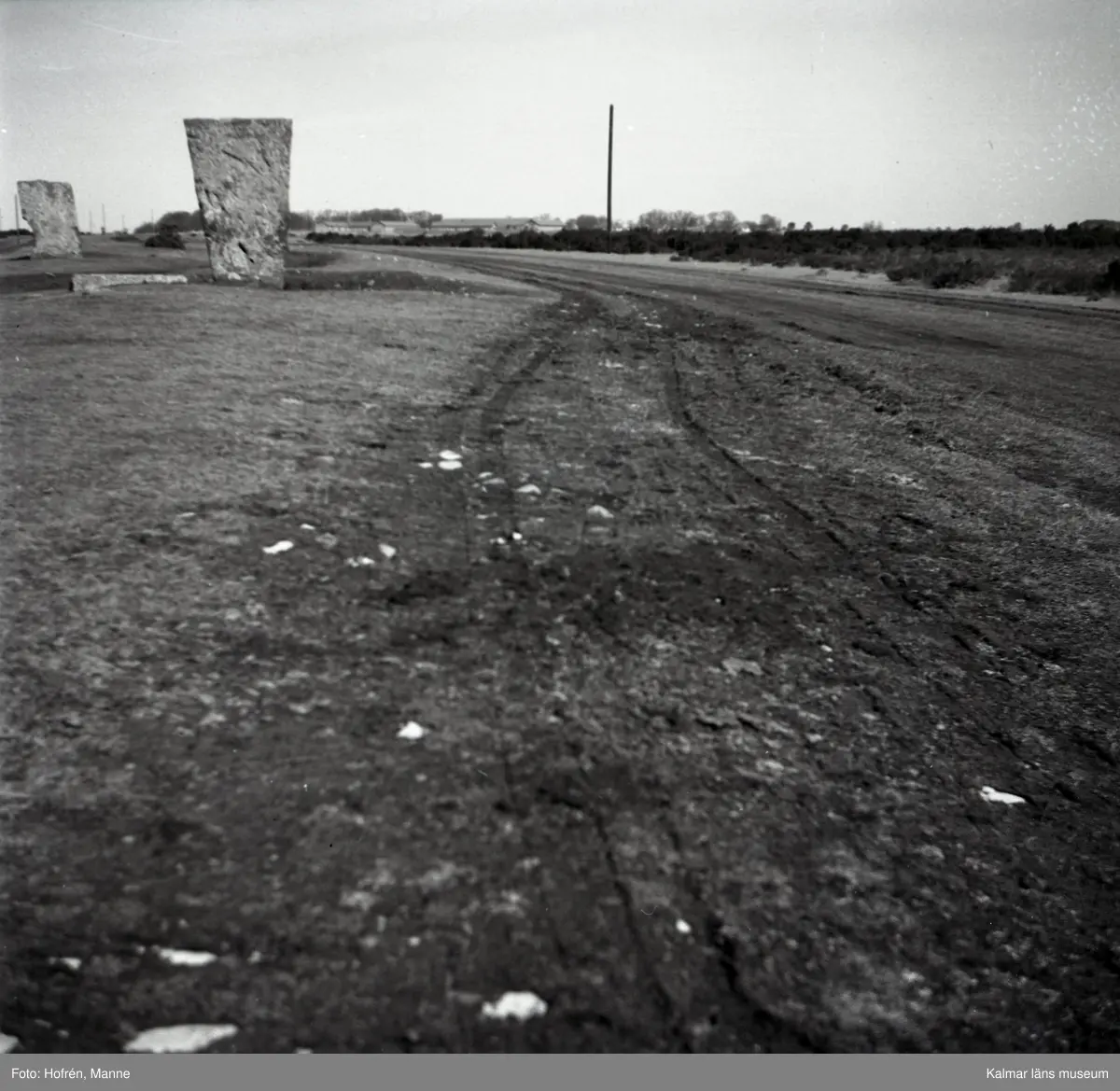 Kungsstenarna vid södra udden. Observera den skadade marken där man kört med motorforden på den känsliga heden.
