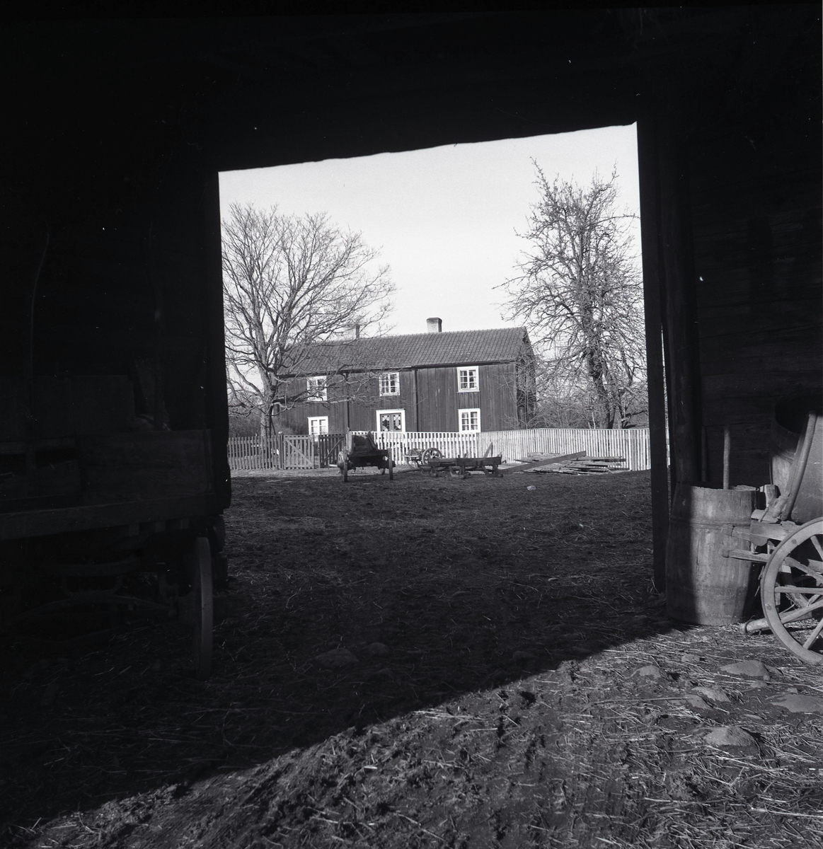 Ett bostadshus bortom en loge i Melby.